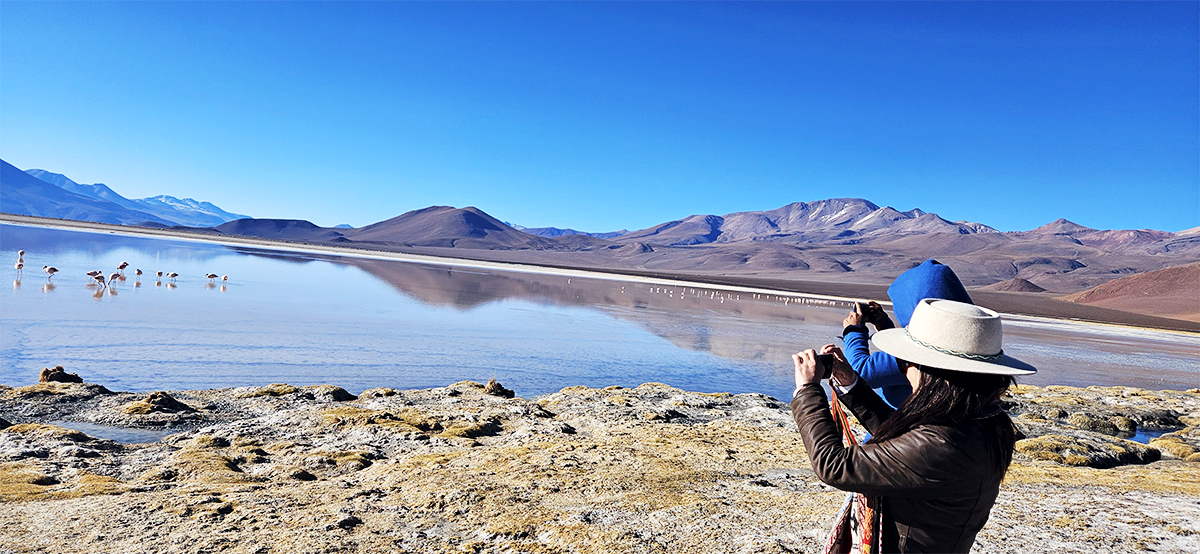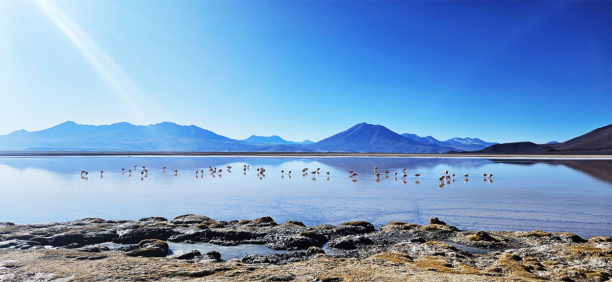 Después del desayuno visitamos el museo de necrópolis, un recorrido de 15 a 20 minutos luego cruzamos el salar de Chiguna, subimos hacia las montañas cruzando por medio de rocas volcánicas con figuras, yaretas pegadas en las mismas rocas volcánicas, continuando nuestro viaje hacia el sur visitaremos diferentes lagunas como la Laguna Chulluncani, Kachi Laguna, Q’ara Laguna, Desierto de Siloli , Arbol de Piedra, una de las gemas de la Reserva Eduardo Avaroa: La Laguna Colorada, Esta Laguna es el centro de anidación de tres especies de flamencos el color de sus aguas es producido por la presencia de algas y plancton activo por los rayos solares y donde podremos observar una gran cantidad de flamencos y otros tipos de aves como gaviotas andinas y patos silvestres. Estas aves viven en estas lagunas rodeadas de volcanes de nieves eternas y laderas verdes mezcladas con otros colores creadas por la presencia de borax y Azufre.